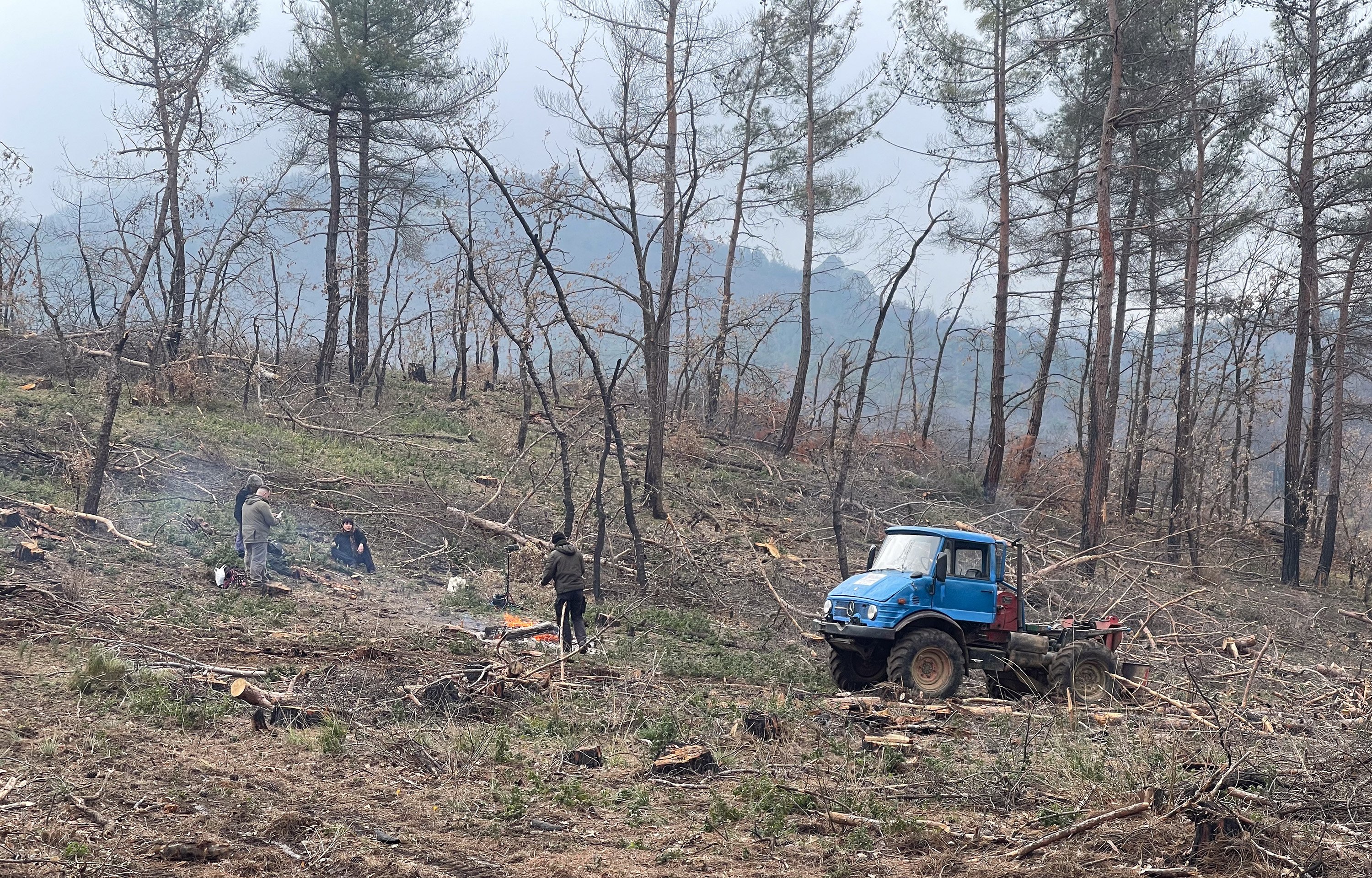 In the emptied silence of Dadia, the sound carried far. Listening to these tank shots was only possible because of the profound silence inside the forest and the burned, naked trees.