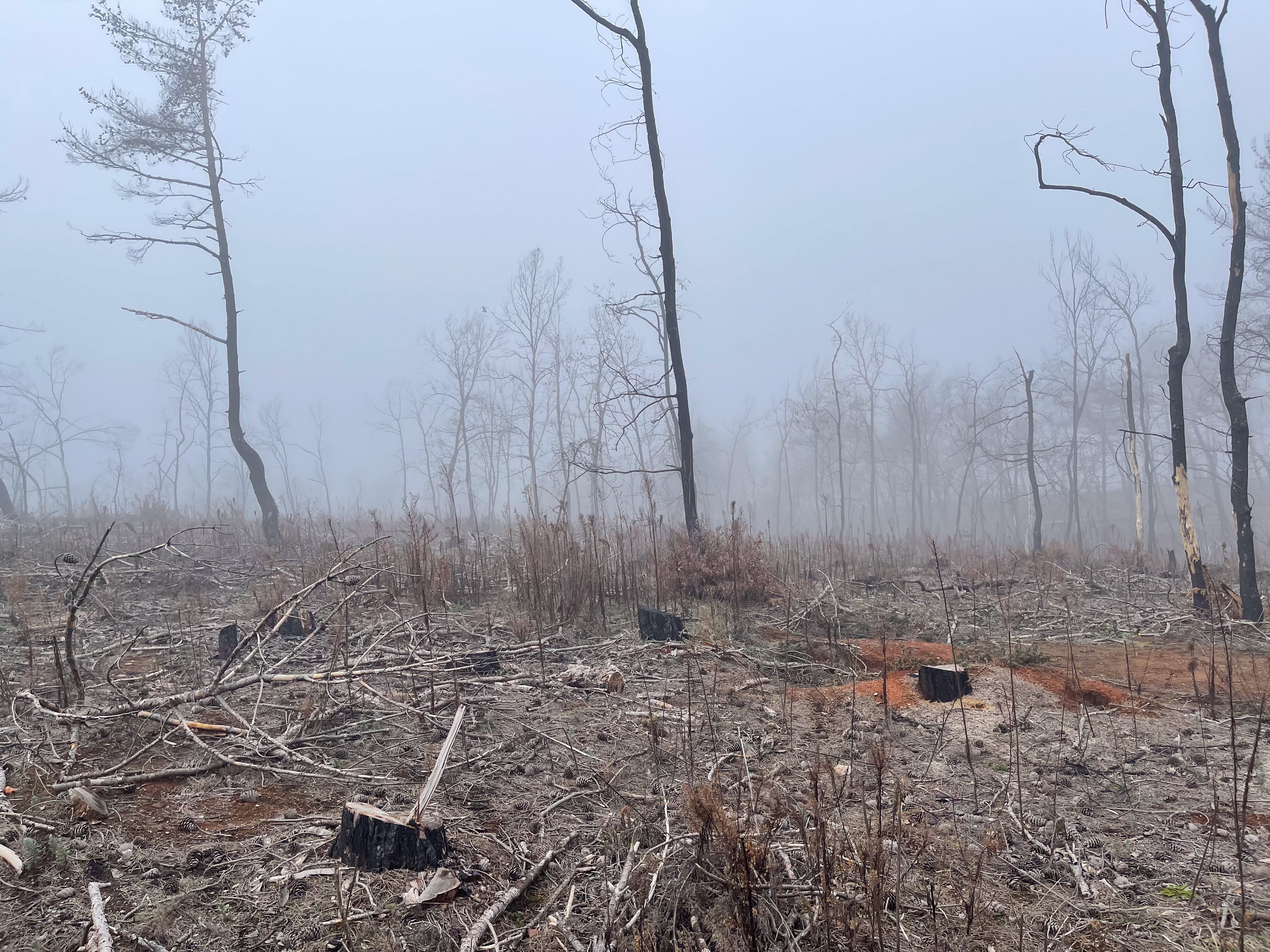 The wildfires of 2022 and 2023, and the horrific event of at least nineteen people according to the official numbers who were trapped and died here while trying to cross, profoundly altered the environment. Left behind long stretches of silence, broken only by wind through burned branches or the distant echo of life outside the forest.